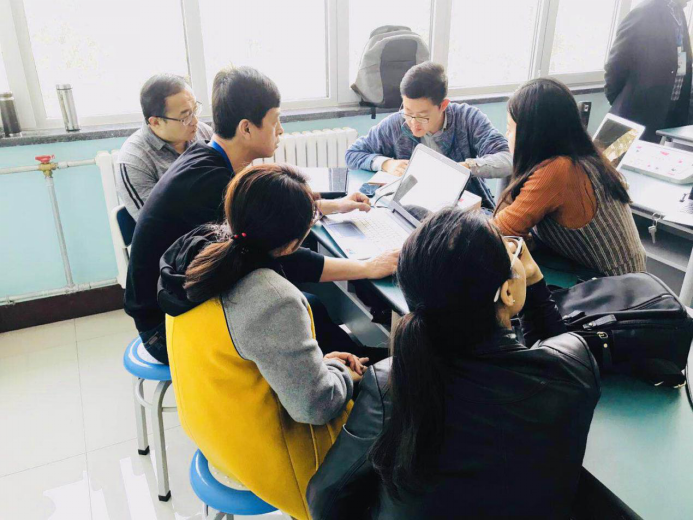 在进行了充实的理论学习之后,我们来到城阳十五中学,进行了分组培训和实际操作,组内七人相互合作进行了小组研讨课的创作。
