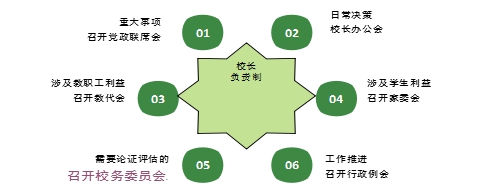 第十一条 学校建立由党组织与学校领导班子共同组成的党政联席会,作为重大事项的决策机构,讨论关于学校发展规划、重要改革、财务预决算和教学科研、招生录取、基本建设方面的重大事项,以及涉及师生切身利益的重要问题。