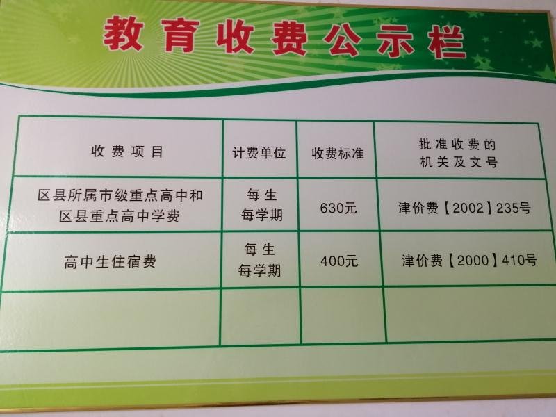 张家窝中学教育收费公示