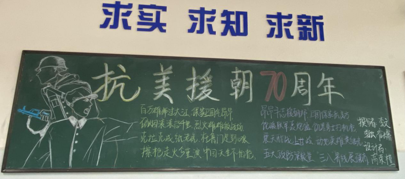 五、各班精心设计一期黑板报,掀起学习热潮,共同营造弘扬伟大抗美援朝精神的良好氛围。