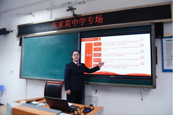 为迎接即将到来的第七个国家宪法日,进一步增强全社会的法治意识,弘扬宪法精神,11月30日下午,我院青禾未检工作室走进张家窝中学开展了以“宪法与我”为主题的法治教育讲座。